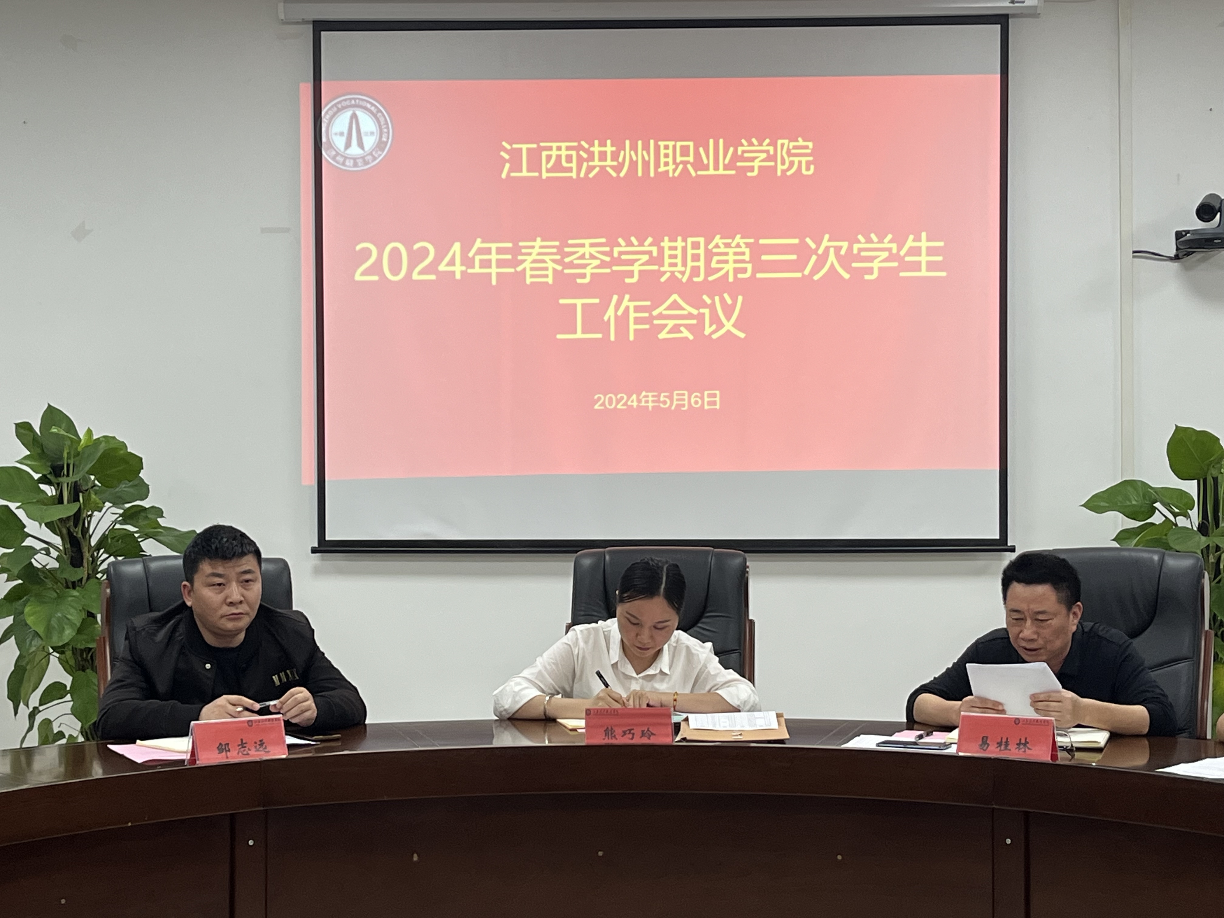 为进一步提升我校学生管理服务水平,5月6日下午,我校召开2024年春季学期第三次学生工作会议。纪委书记熊巧玲出席会议,学生工作部(处)部(处)长易桂林,团委书记邹志远,各二级学院党支部(副)书记、学工办主任,全体辅导员、班主任,全体学团工作人员参加。会议由学生工作部(处)综合科副科长熊支鹏主持。