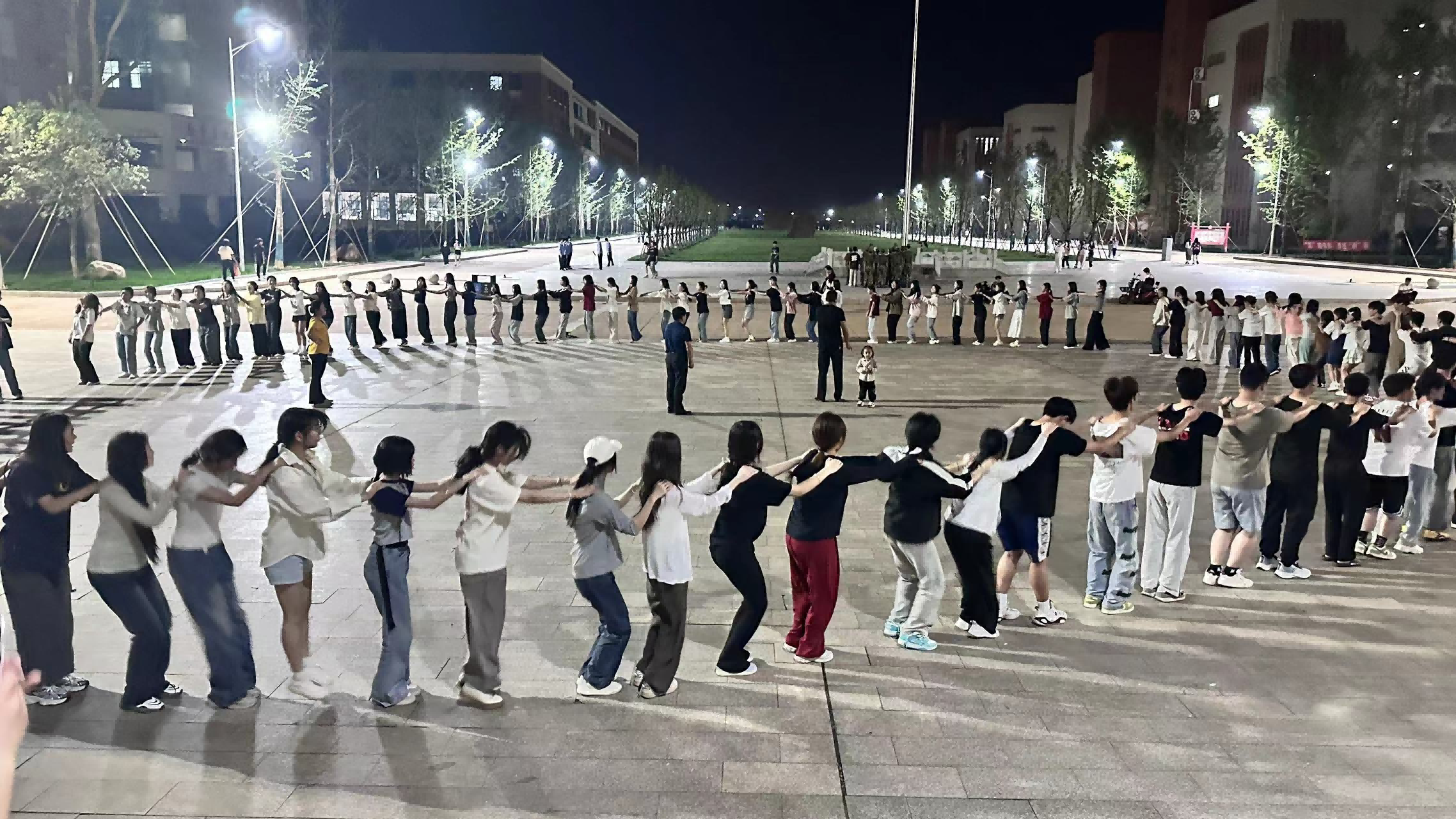 活动的最后,在武装部毛宁教官的指导下,大家一起学习了每期活动必跳“兔子舞”的分解动作,跟着“左左右右,前后前前前”的指令,围成一个大圆圈。