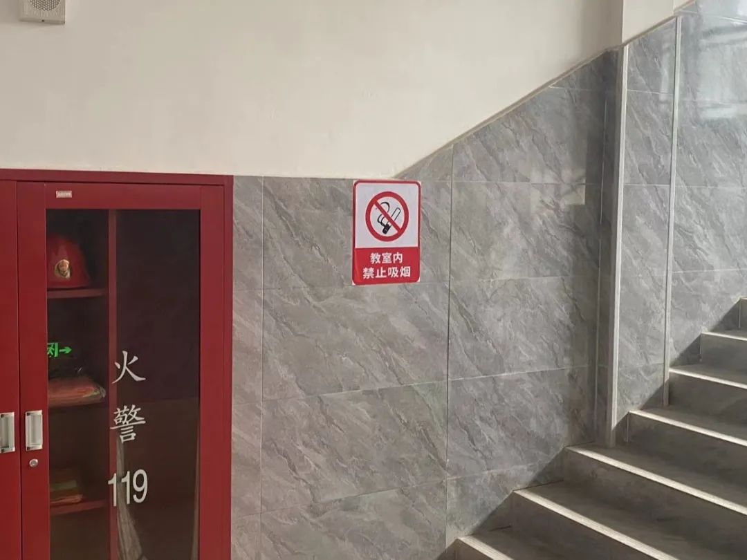 三、宿舍和教学楼等公共区域张贴禁烟标志