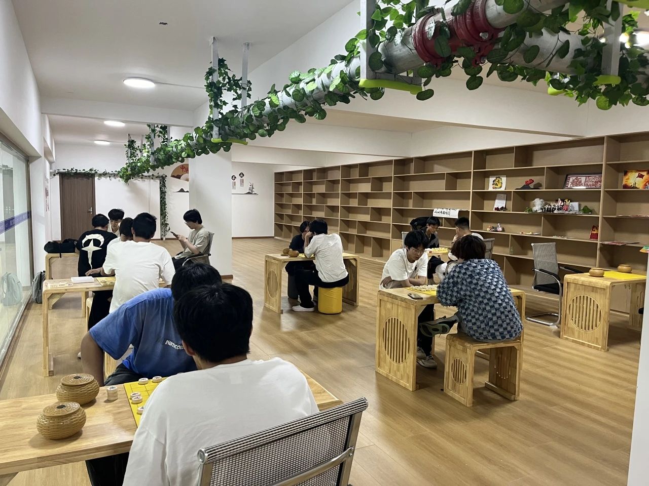在大厅二楼的中华传统文化体验区,学生们可以尽情体验“琴棋书画”