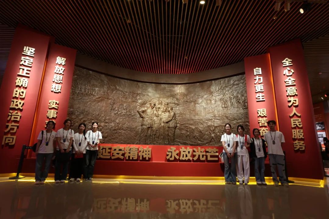 为深入贯彻落实党的二十大精神和习近平总书记关于“传承红色基因”“培育时代新人”等重要论述精神,夯实红色文化融入“大思政课”建设,推动广大青少年弘扬红色文化、传承红色基因;7月4日至6日,我校组织研学队20余名师生前往陕西省延安市开展 “传承红色基因,强国复兴有我”红色实地走读活动,深入中国革命的落脚点和出发点,学习弘扬爱国主义、革命传统和延安精神。回忆伟大历程,感悟历史痕迹7月4日清晨,研学队来到了延安革命纪念馆,广场上巍然耸立的毛泽东铜像俯瞰着这片红色的土地,师生们深情地注视着伟大的领袖,眼神中充满了敬重与爱意。随后,在讲解员的带领下,师生们有序进入纪念馆,开始了对革命历史的探寻之旅。