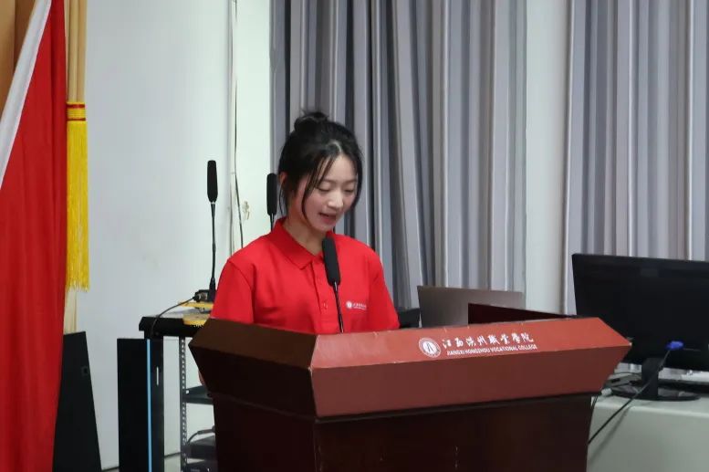 学生志愿者代表陈家慧和实践团队指导老师代表洪为上台发言。