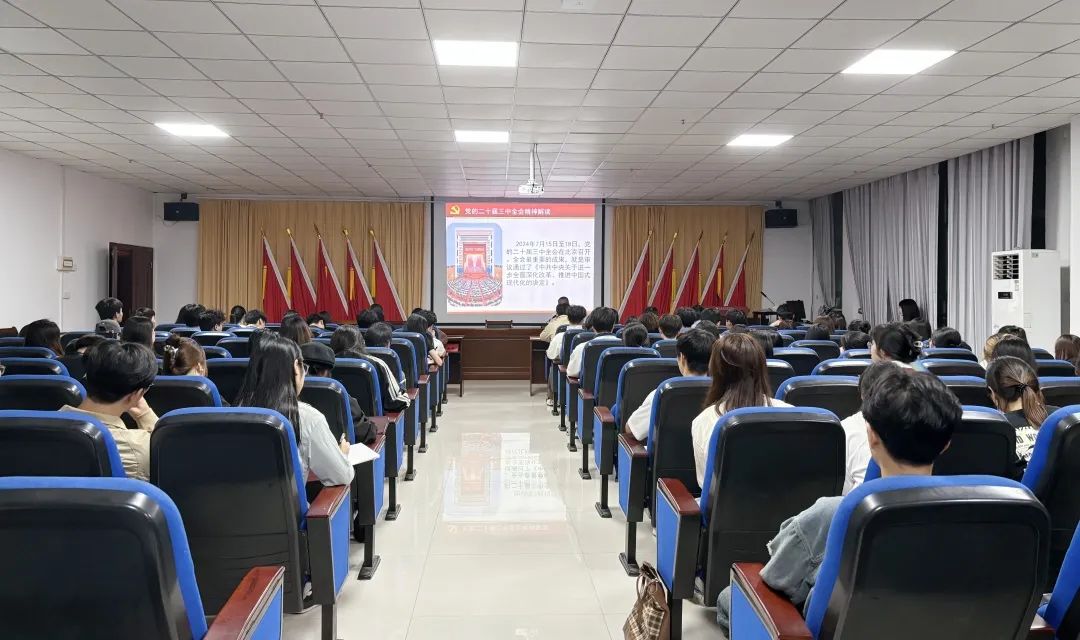 为了深入学习和贯彻党的二十届三中全会精神,并加强学生骨干的思想政治教育,10月17日晚,思政部主任彭庆在学术报告厅为学校大骨班学员和学生会的干部们带来了一堂主旨鲜明、内容丰富的专题思政课,对党的二十届三中全会精神进行了深刻解读。此次活动由学校团委负责组织和开展。