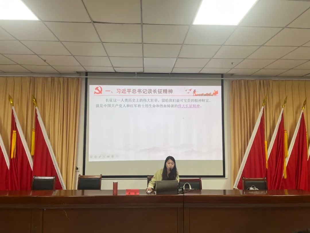 思政部黄苗老师从长征背景出发,讲述这一人类历史上的伟大壮举,她讲到长征留给我们最可贵的精神财富,就是中国共产党人和红军将士用生命和热血铸就的伟大长征精神。在第五次反“围剿”失败后,红军被迫实行了战略转移。国民党军队的重兵围堵,让红军的生存面临巨大危机,同时“左”倾教条主义的错误领导,使红军陷于被动,在这样的局势下,长征拉开序幕。