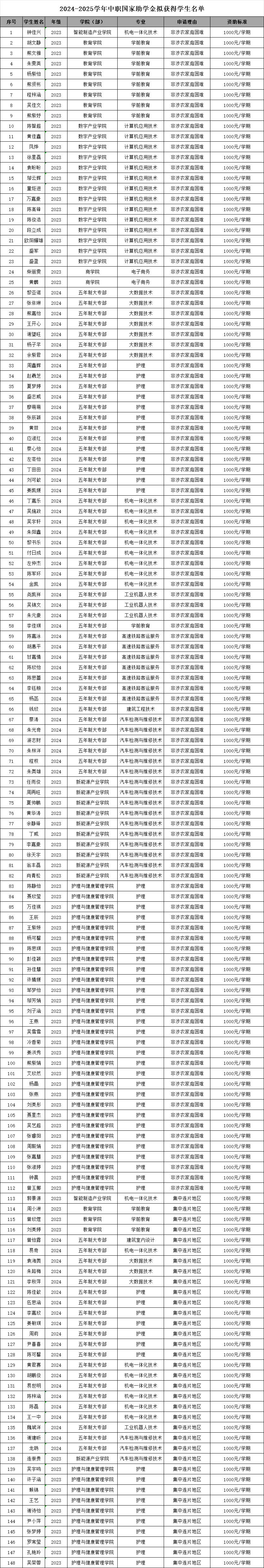 根据江西省财政厅 江西省教育厅 江西省人力资源和社会保障厅 江西省退役军人事务厅 江西省人民政府征兵办公室印发的《江西省学生资助资金管理办法通知》(赣财教〔2023〕2号)、江西省学生资助管理中心印发的《江西省中等职业教育学生资助工作四项操作规程》(赣助中心〔2022〕2号)、《江西洪州职业学院中职国家助学金管理办法(2022年修订)》(赣洪职校字〔2022〕97号)相关精神,学校公正、公平、公开地开展了2024-2025学年中职国家助学金的评审工作。经学生本人申请,班级推荐,学院评审小组初审,学生资助中心复核,学校国家奖助学金评审委员会评审,校长办公会审议通过,钟佳兴等148名学生拟获得204-2025学年中职国家助学金,现将名单公示如下。