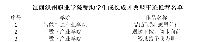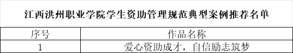思政工作 思政教育 评优评奖 学生资助 队伍建设 学生资助 当前位置: 首页 > 思政工作 > 学生资助 > 正文 关于公布2024年度学生资助规范管理典型案例和受助学生成长成才典型事迹评选结果的通知 时间:2024-09-30 责任编辑:熊丽丽 初审:占俊浩 二审:张文斌 终审:易桂林 阅读量:2158 各二级学院: 为深入学习贯彻习近平新时代中国特色社会主义思想和党的二十大精神,推广学生资助规范管理典型案例,提升学生资助科学化、规范化管理水平,展现受助学生成长成才精神风貌,根据《关于 2024 年度征集学生资助规范管理典型案例和受助学生成长成才典型事迹的通知》(洪职学工字〔2024〕28 号)精神,经各学院推荐、学校综合评审,共评选出典型案例1篇,典型事迹3篇(详见名单)上报至省教育厅,现予以公布。 学生资助中心 2024年9月30日 上一篇:2024-2025学年秋季学期中职国家免学费拟获得学生名单公示 下一篇:2024年家庭经济困难学生发展型资助项目拟立项名单公布