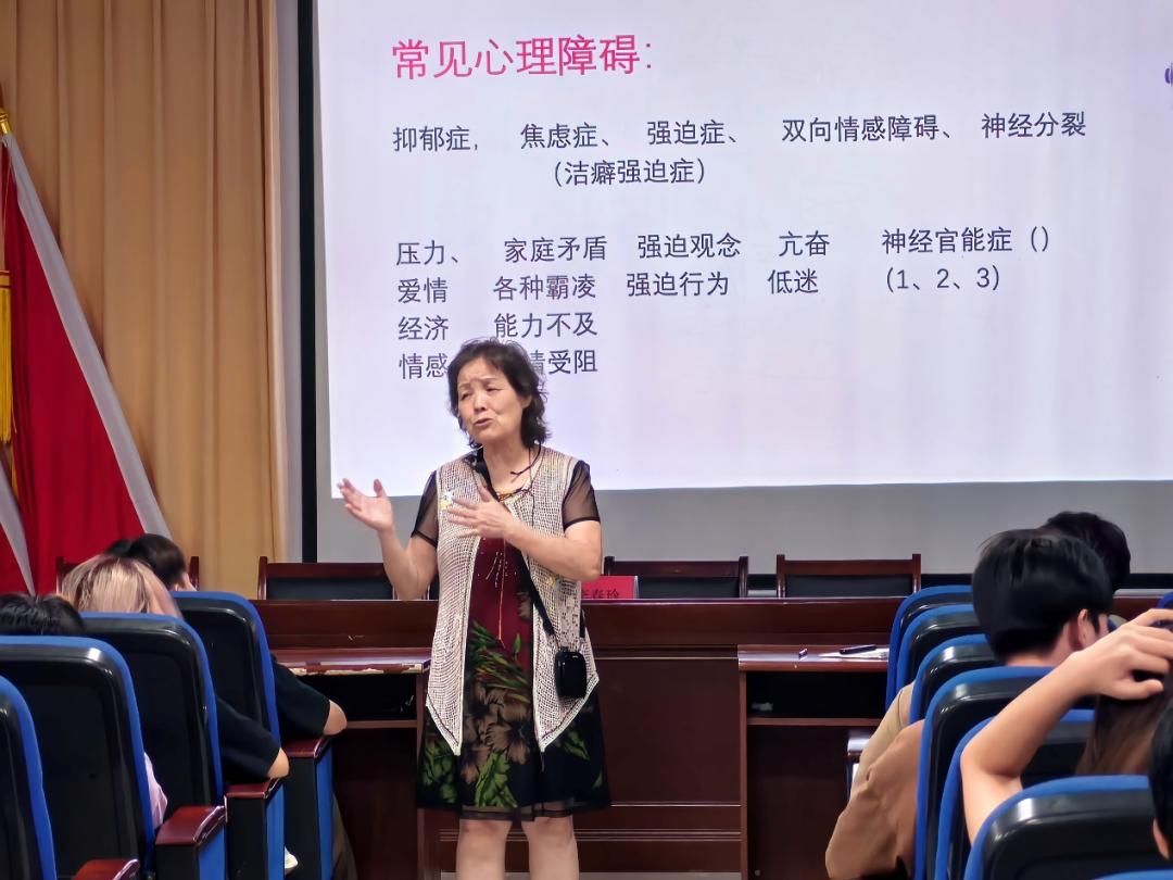 最后,李春玲通过实际案例分享了几种常见心理障碍的表现,让师生们在学习、生活、工作中能正确地识别与对待心理问题,减少不确定带来的焦虑与恐惧。并结合自我调适的技巧,对于焦虑、抑郁等情绪状态如何进行有效的自我干预这一问题进行了解释。李老师通过形象生动的事例展示与对心理健康知识的深刻把握,让师生们深刻理解到心理健康的内涵,通过这场讲座,也让在场师生对心理问题有了更加准确的把握和正确的对待。