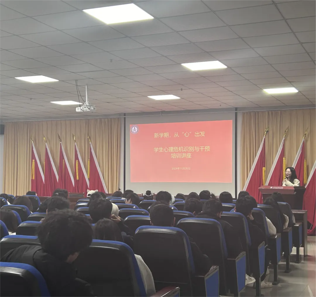 为进一步普及心理健康基本知识和技能,完善学校“五维”心理健康保障体系,加强心理工作相关人员的危机干预认识,及时识别有心理问题倾向的同学并引导其寻求专业帮助。11月20日晚,学工处心理健康教育与咨询中心于图书馆一楼学术报告厅组织开展了新学期,从“心”出发特别活动:“学生心理危机识别与干预”培训讲座。讲座由心理中心专职教师戴维主讲,寝室心理联络员、班级心理委员、辅导员(班主任)、学团人员等200余人到场聆听。