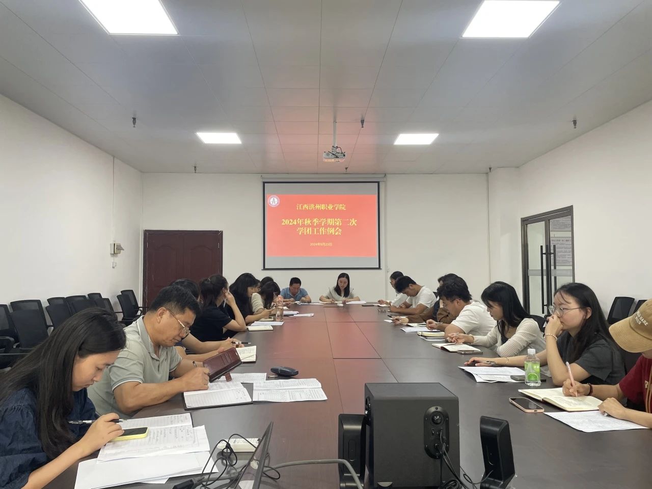 9月23日,我校在学生工作处会议室召开第二次学团工作例会。纪委书记熊巧玲、学生工作处处长易桂林出席会议,各分院书记、学工办主任以及学工处、团委全体人员参加会议。