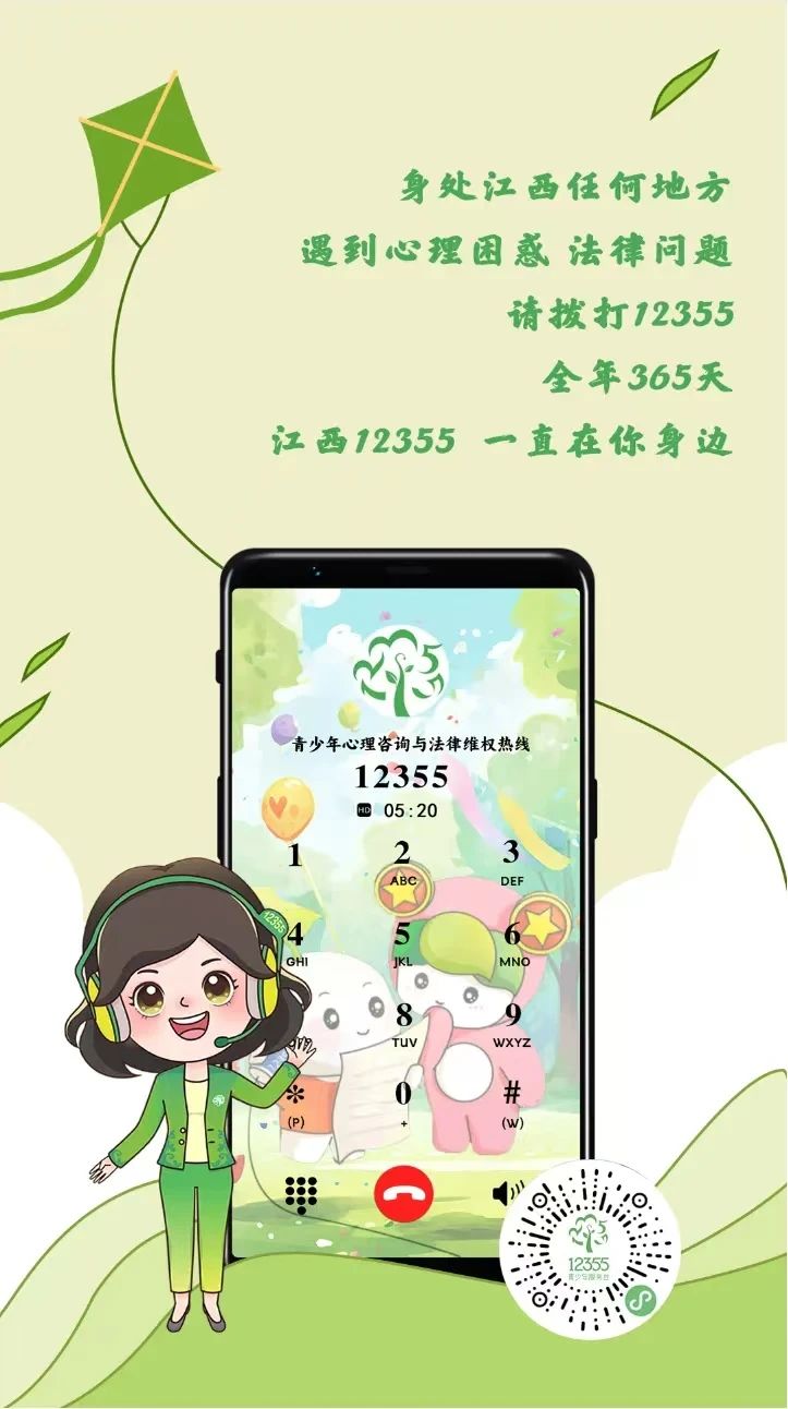 6、其他24小时心理援助热线:老师、同学们如遇紧急心理危机情况,可拨打江西省社会心理服务热线966525、青少年心理咨询与法律维权热线12355、全国统一心理援助热线12356或以下其他公益服务热线,同学们还可拨打0795-6522881同心理中心取得联系,从而获取更多的心理健康服务。