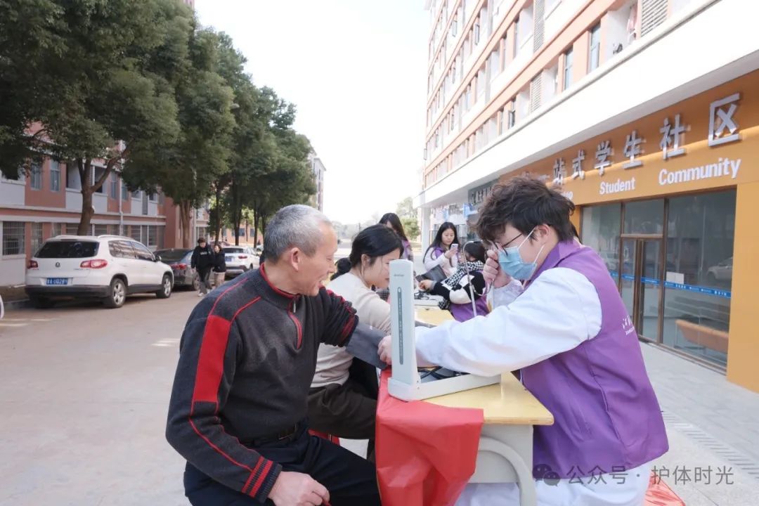 为深入学习贯彻党的二十大及二十届三中全会精神,特别是习近平总书记关于全面深化改革的一系列新思想、新观点、新论断,进一步激发党员干部的责任感与使命感,提升服务群众的能力和水平,特举办本次志愿服务活动,强化党员的理论武装,促进学以致用,推动担当作为。12月 18日下午,护理与健康管理学院党支部党员及入党积极分子在一站式学生社区开展了 “健康启航,温暖同行” 爱心测血压活动。活动期间,志愿者们前往南、北两区的教学楼、宿舍楼和食堂,对保安、宿管、学生、教师们进行爱心测血压,并科普高血压预防知识。