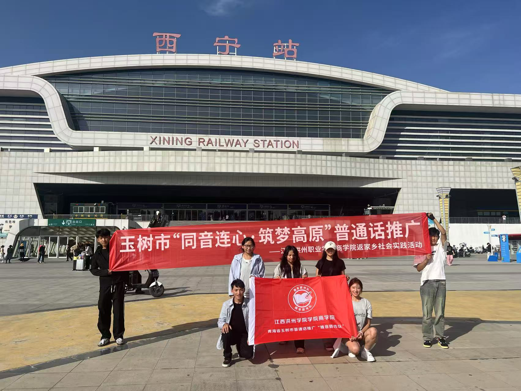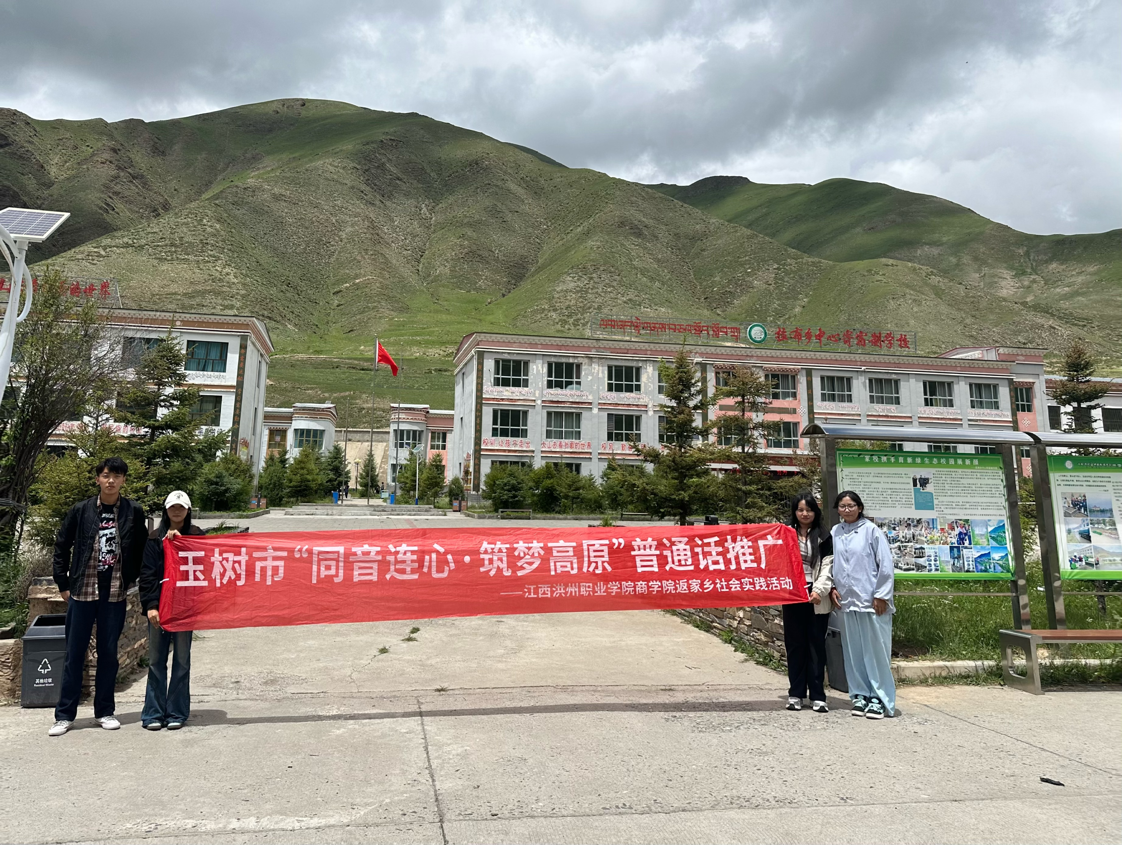 2025年7月15日至20日,江西洪州职业学院商学院联合玉树籍返乡大学生组成"雅音薪传队",在玉树市称多县拉布乡开展普通话推广实践活动。玉树籍返乡大学生成员有尕松才仁、更松曲措、巴丁扎西、才巴、美拉松保、才仁卓玛、卡卓江才、伊西卡卓。通过牧区帐篷课堂、儿童普通话乐园等特色形式,服务牧民、儿童等群体200余人次,有效提升国家通用语言文字使用能力,助力民族团结与乡村振兴。
