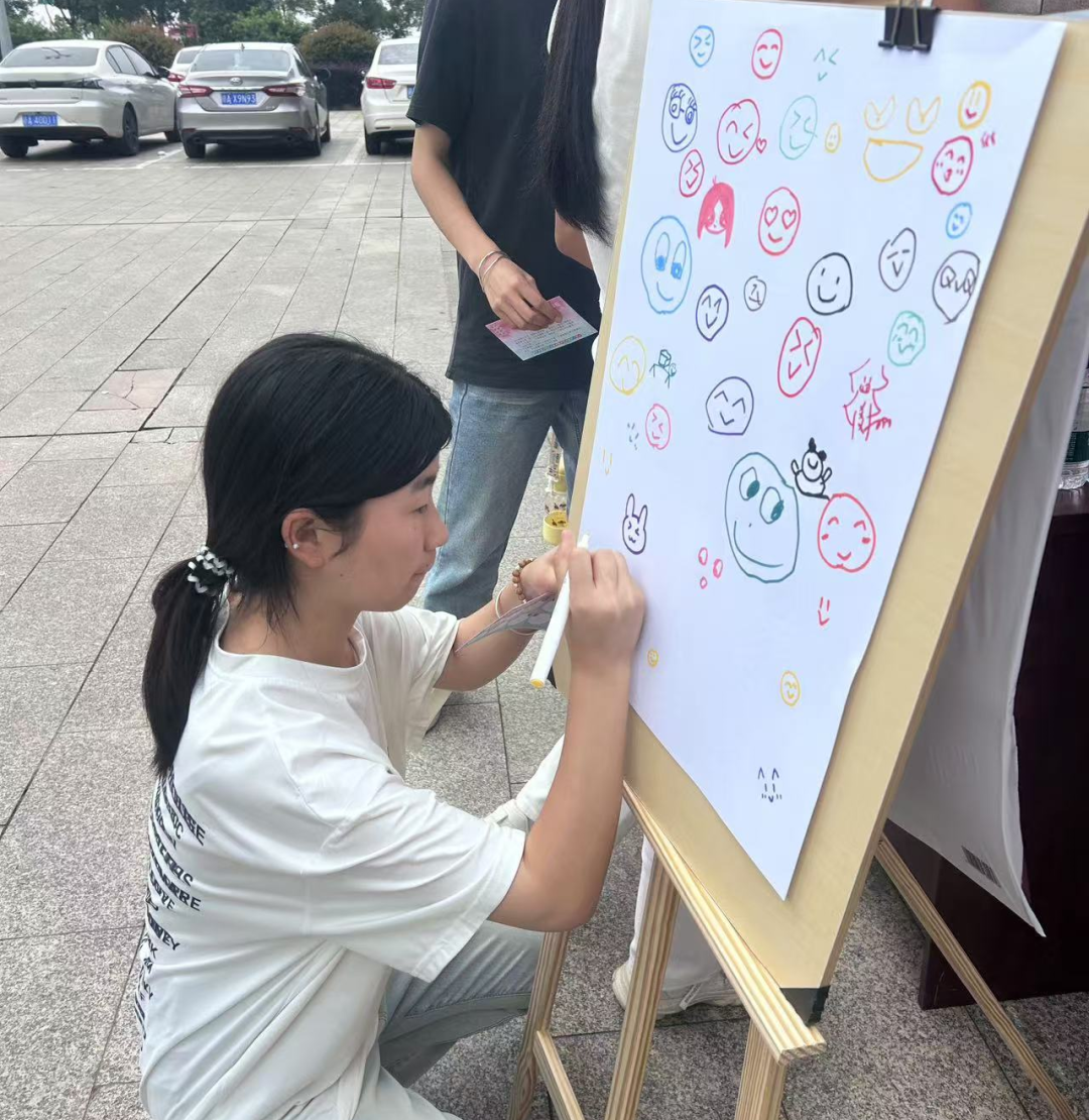 在“留下你的笑脸吧”区域内,大家精心挑选自己喜欢的画笔颜色,在纸上画下象征着自己快乐心情的笑脸,期盼把这一份能量传递给路过的每一个人。