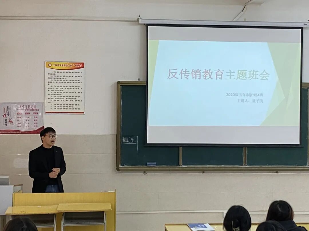 在班会上,聂子凯老师向同学们介绍了传销的定义、传销惯用的套路,并且结合实际案例,讲解了鉴别传销的标准,以及误入传销组织如何应对。最后聂子凯老师发出倡议,同学们要提高警惕,防范传销的侵害。