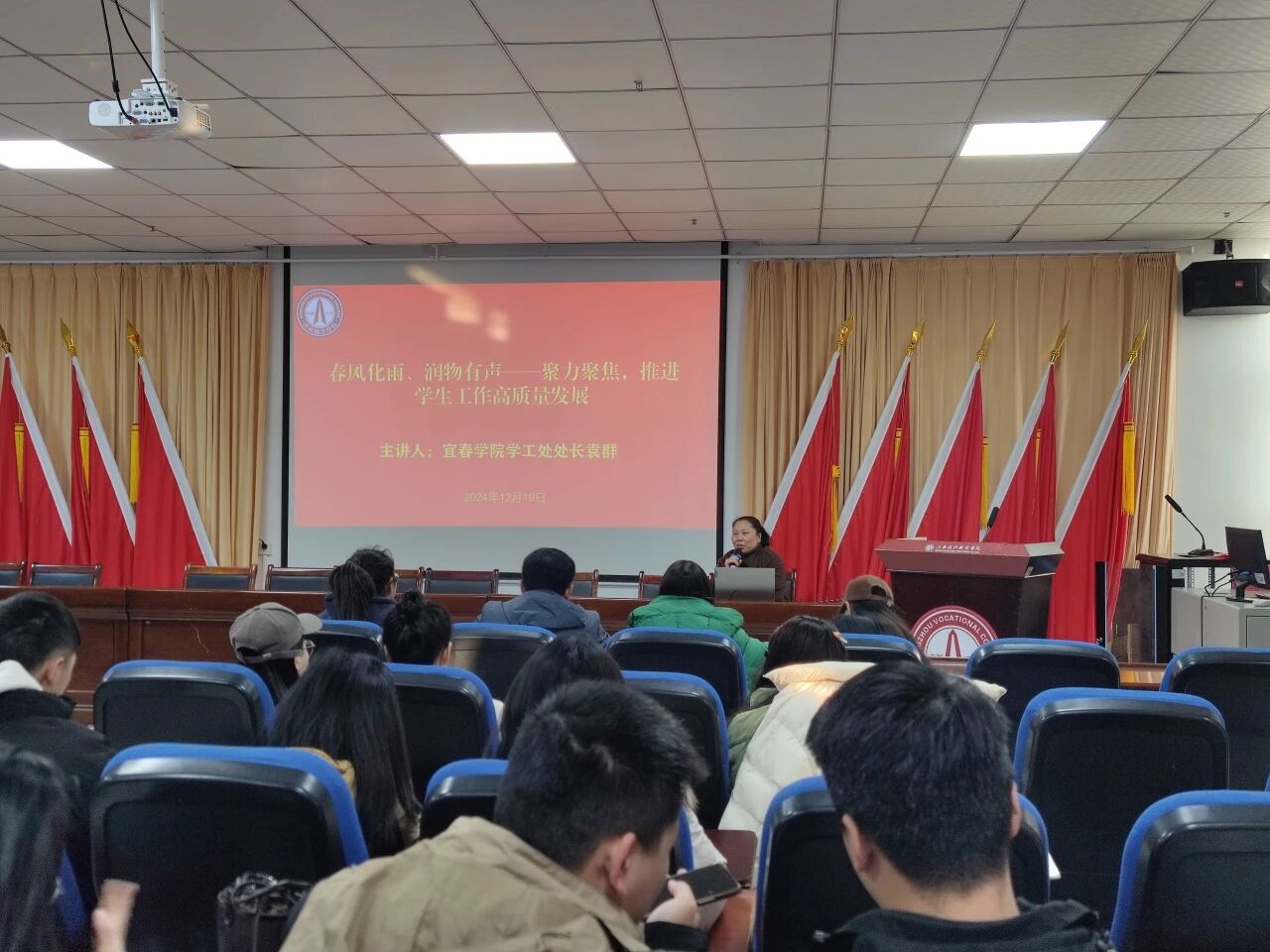 南昌大学人文学院党委副书记胡邦宁以《“聚焦主责主业,提升素质能力”辅导员工作室建设专题培训》为辅导员工作室的建设进行指导。宜春学院学工处处长袁群以《春风化雨、润物有声--聚力聚焦,推进学生工作高质量发展》为题作专题授课。宜春职业技术学院学工处处长谢海英以《“四个强化”持续推进学生工作高质量发展》为题进行专题辅导。