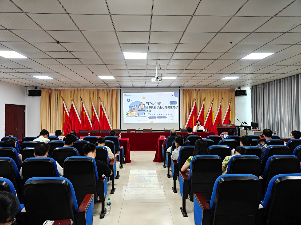 心理健康教育咨询中心副主任钟森森作《与“心”同行:辅导员的学生心理健康守护指南》专题辅导,通过专业心理学知识和真实案例,讲授了常见心理问题的识别与干预技巧,增强了辅导员应对心理危机事件的实战能力。学生工作处公寓中心李普恒围绕宿舍文化建设与管理作了系统说明,进一步规范学生宿舍管理流程,营造良好生活环境。