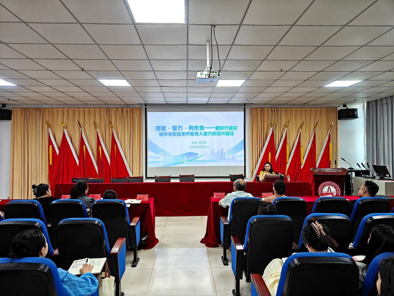 纪委书记熊巧玲作《赋能·聚力·向未来——新时代高校辅导员职业素养和育人能力的提升方法》专题讲座,结合理论与实践经验,系统阐述辅导员职业技能提升的方式方法,为学生工作队伍的自我革新与持续发展指明方向。