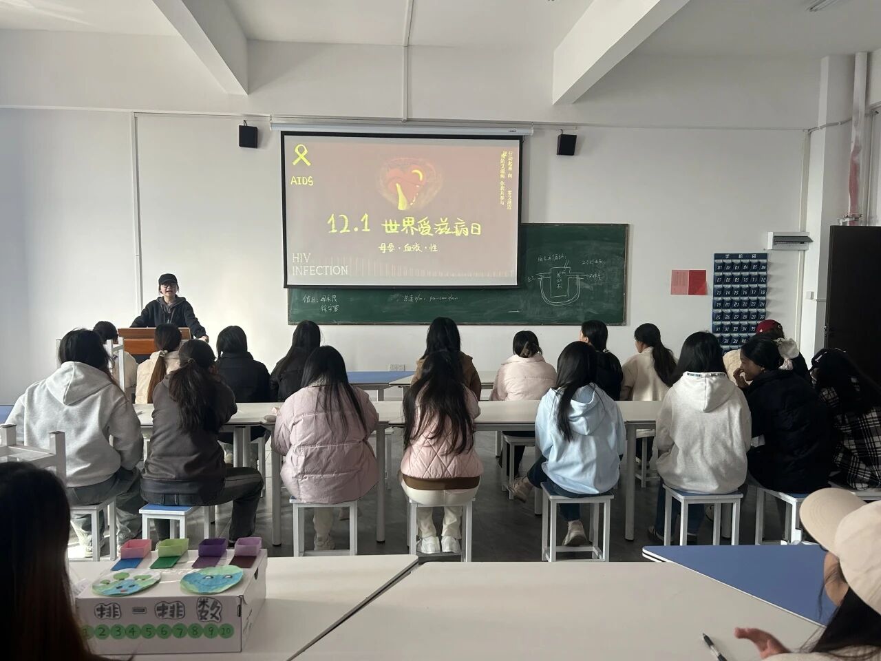 聂主任结合临床实例,深入浅出地讲解了艾滋病的科学防控措施、暴露后预防与暴露前预防知识、检测咨询的重要性以及正确的性健康观念。讲座还拓展讲解了梅毒等重点性传播疾病的防护知识,帮助学生建立全面的性病防控意识。专业权威的科普,为学生们带来了一堂生动深刻的生命健康课。三、主题班会,深化防艾教育各学院、班级围绕“社会共治,守正创新,终结艾滋”主题,组织召开预防艾滋病教育主题班会。