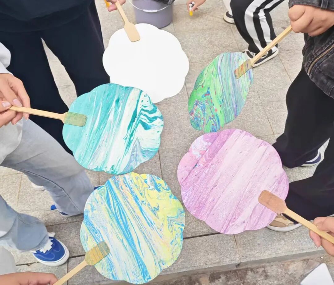“原来不用会画画也能做出这么好看的扇子!”“涂颜色的时候完全忘记了考试压力,太放松了~”“看到成品的那一刻!感觉自己亲手把普通的扇子变得独一无二,特别有成就感。”活动过程中,同学们的欢声笑语不断,大家纷纷展示自己的作品,分享创作时的轻松心境。不少同学表示,这样的沉浸式创作让自己暂时脱离了学业和社交的压力,情绪得到了自然宣泄,收获了满满的快乐与平静。