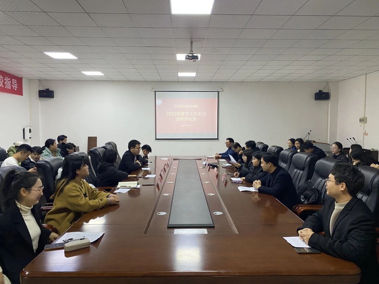 为进一步加强学工队伍建设,有效推动学生工作高质量发展,切实提升学工办主任的工作能力和综合素质,全面回顾、总结、展示2023年工作成果,1月8日晚上,学生工作部(处)在图书馆7楼会议室组织召开学工办主任述职评议会。学生工作部(处)部(处)长易桂林、团委书记邹志远、学生工作部(处)副部(处)长张文斌、各学院党支部(副)书记和全体辅导员参加会议,学生工作部(处)部(处)长易桂林主持。