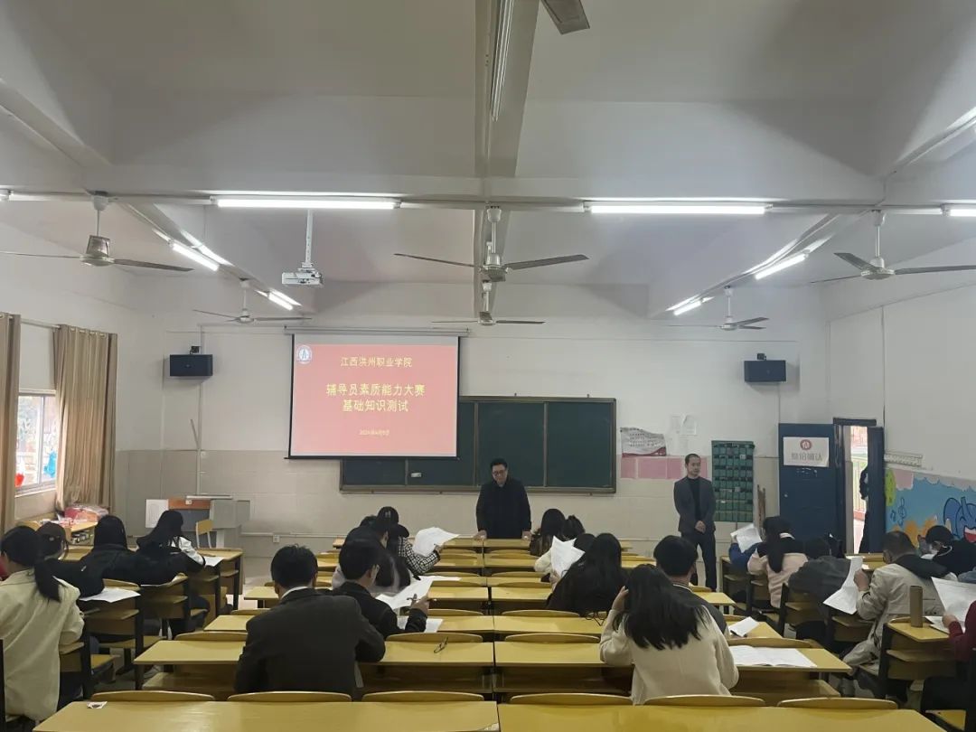为深入学习贯彻习近平新时代中国特色社会主义思想全面落实党的二十大精神和习近平总书记考察江西重要讲话精神,全面贯彻落实全国高校思想政治工作会议和《中共中央国务院关于加强和改进新形势下高校思想政治工作的意见》精神,根据《普通高等学校辅导员队伍建设规定》(教育部第43号令)和《高等学校辅导员职业能力标准(暂行)》要求,我校于4月8日在教学楼5-105教室举行辅导员素质能力大赛基本知识测试。学校全体专职辅导员参加了本次考试。