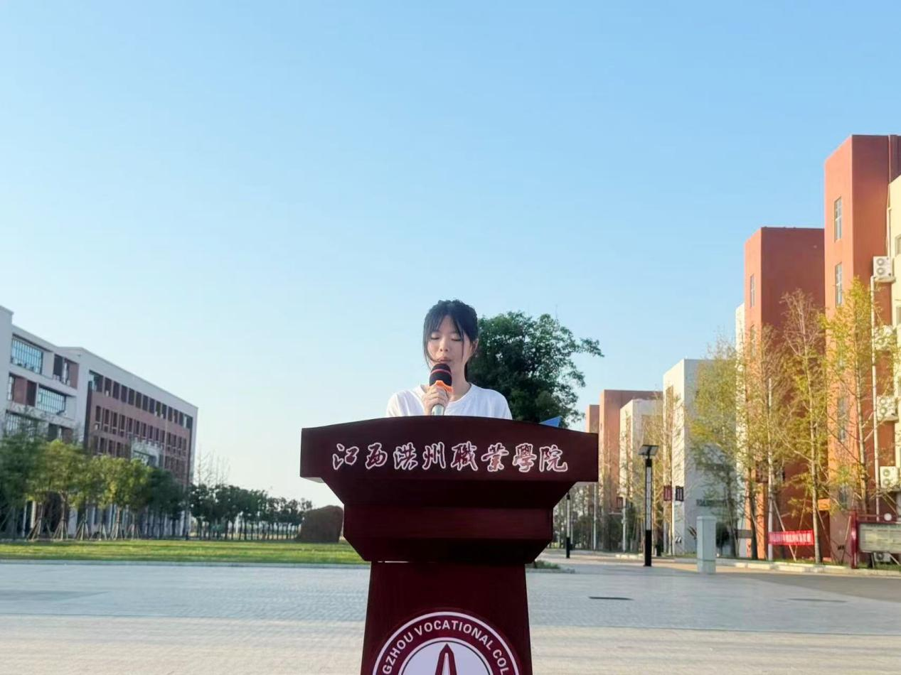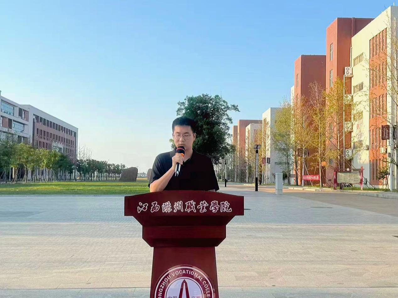 随后,2024级环境工程技术1班杜彦同学作为学生代表发言,以青年视角诠释新时代新能源学子的责任与担当。她从生活中的新能源场景切入——光伏板转化的电流、穿梭街头的新能源汽车、海风里转动的风电叶片,生动展现新能源时代的蓬勃生机。回顾人类能源探索历程,她表示,面对传统能源枯竭与环境压力,新能源是破解“能源安全”与“绿色发展”难题的关键,更是“绿水青山就是金山银山”理念的技术支撑。她号召同学们在课堂上钻研物理计算、化学实验,在社会实践中调研乡村能源、宣传社区节能,为新能源事业添砖加瓦。