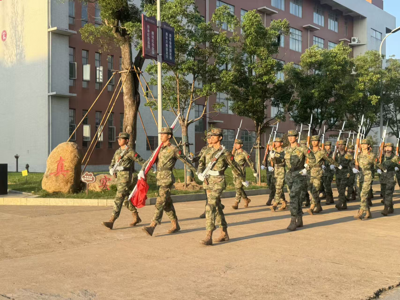 清晨7时,晨光熹微,国旗护卫队队员身着整齐制服,迈着坚定有力的步伐,护送国旗走向升旗台。伴随着激昂雄壮的《义勇军进行曲》,鲜艳的五星红旗冉冉升起、迎风飘扬。全体师生肃立注目,高唱国歌,浓浓的爱国之情与奋进之心在广场上激荡,为本次思政课拉开庄重序幕。
