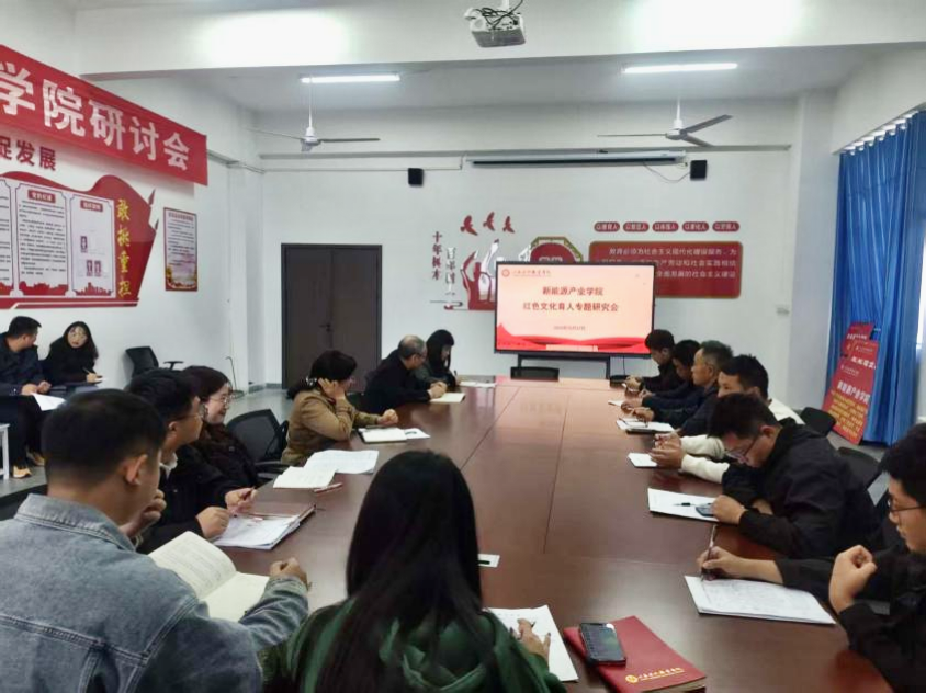 为深入贯彻习近平总书记关于"推进红色基因传承"的重要指示精神,全面落实立德树人根本任务,10月22日下午,新能源产业学院在党员活动室召开红色文化育人专题研讨会。学院党总支副书记韩春萌主持会议并发表讲话,学院全体教职工参加此次会议。