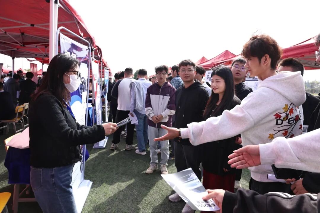 为深入贯彻落实国家关于高校毕业生就业工作的部署要求,全力促进2026届毕业生更充分、更高质量就业,10月25日上午,江西洪州职业学院2026届毕业生校园招聘会在学校田径运动场举办。本次招聘会由丰城市人力资源和社会保障局、江西洪州职业学院共同主办,丰城市就业创业服务中心、宜春丰城高新区管委会社会事务局及学院就业指导服务中心联合承办。新能源产业学院组织毕业班学生全员参加。