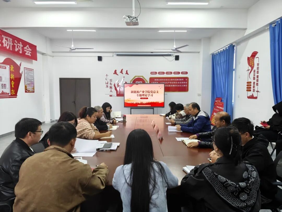 为深入学习党的二十届四中全会精神,2025年11月5日,新能源产业学院党总支组织全体党员,对党的二十届四中全会公报进行专题理论学习。本次学习由党总支部副书记韩春萌主持,副校长傅箭星、教务处处长方元春、公共课教学部主任聂高辉三位领导莅临现场旁听并指导。