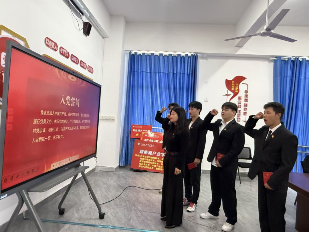 为进一步加强党员队伍建设,增强新发展预备党员的党性意识与责任担当,2025 年 11 月 26 日,新能源产业学院党总支在党员活动室隆重举行预备党员入党宣誓仪式。
