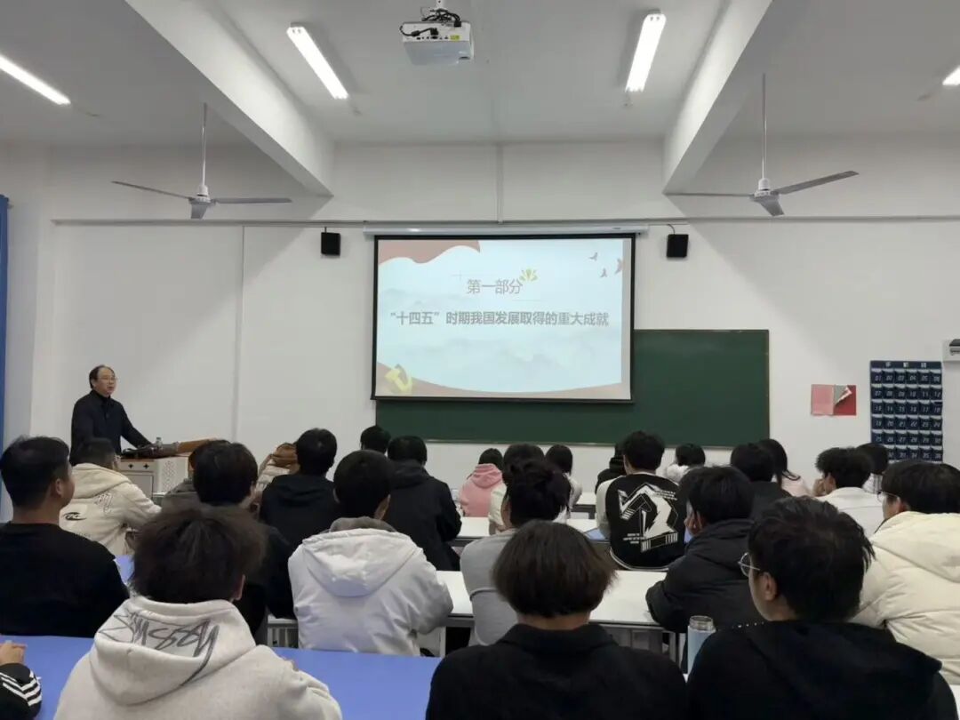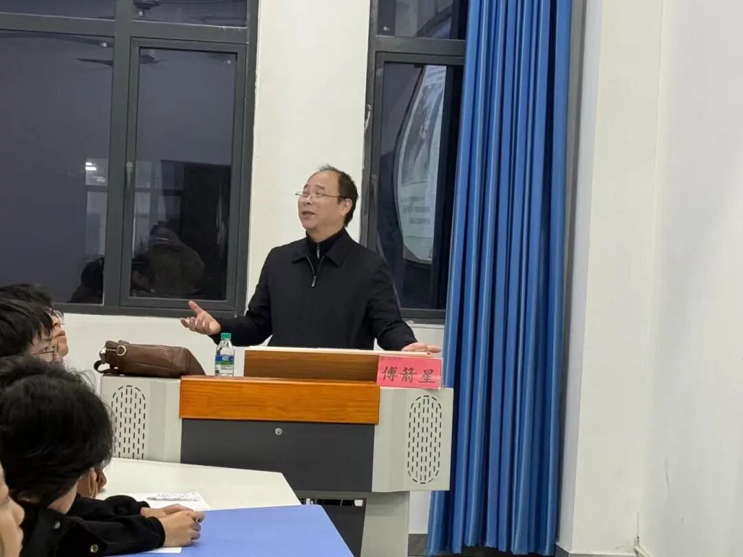 2025年11月24日晚上19点,副校长傅箭星在B207教室,为新能源产业学院学生带来一堂主题为“奋力开创中国式现代化建设新局面 深入学习贯彻党的二十届四中全会精神”的专题思政课,将理论精神与新能源专业特色紧密结合,为学子锚定成长方向。