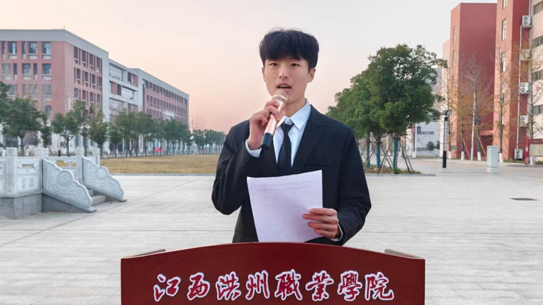 学生代表刘益豪围绕学习贯彻党的二十届四中全会精神,号召青年学子将个人理想融入国家发展。要坚定听党话、跟党走的信念,深耕学业锤炼技能以回应科技自立自强时代需求,并积极投身社会实践,在实干中践行青春使命,共绘“十五五”发展蓝图。