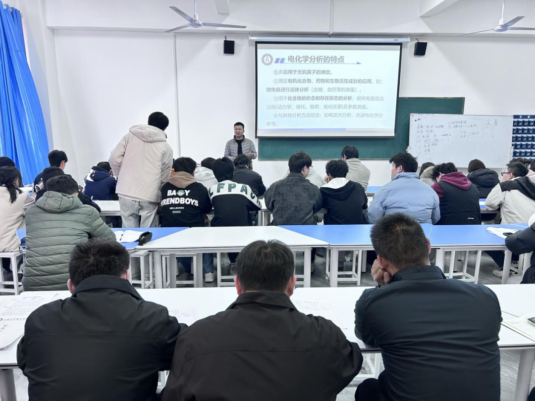 本次公开课由专职教师胡锦主讲,聚焦“仪器分析”课程中的电化学分析内容。课程设计紧密结合新能源材料专业特色与学生认知规律,构建了“情境导入—原理探究—概念构建—拓展延伸”的完整教学闭环。课堂伊始,胡锦老师通过展示家用血糖仪、智能手机电池等学生熟悉的生活物品,巧妙建立起生活实际与专业知识的联系,以“解密高科技”的导入方式充分激发了学生的学习兴趣和探究欲望,明确了本节课“电位分析法”与“电化学基础”两大核心模块的学习目标。