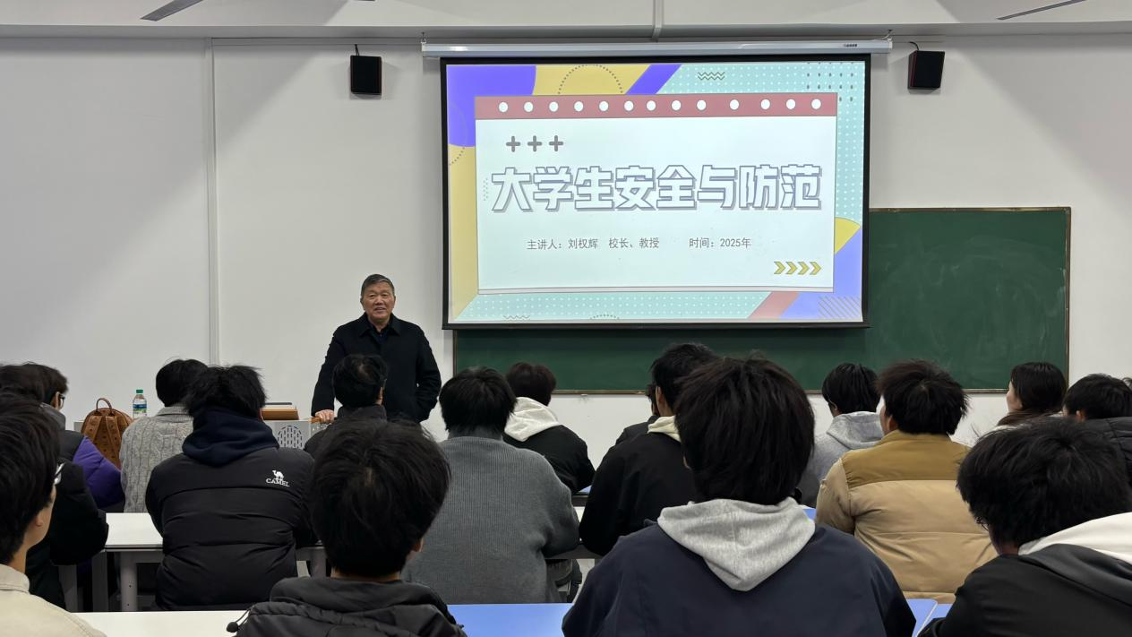 为深入贯彻落实立德树人根本任务,切实强化大学生安全防范意识与法治观念,12月2日与3日晚19:00,校长刘权辉亲临新实训楼B206教室,为新能源产业学院不同班级的学生讲授了以“大学生安全与防范”为主题的思政课,以校长领航授课的方式为青年学子筑牢安全成长屏障。