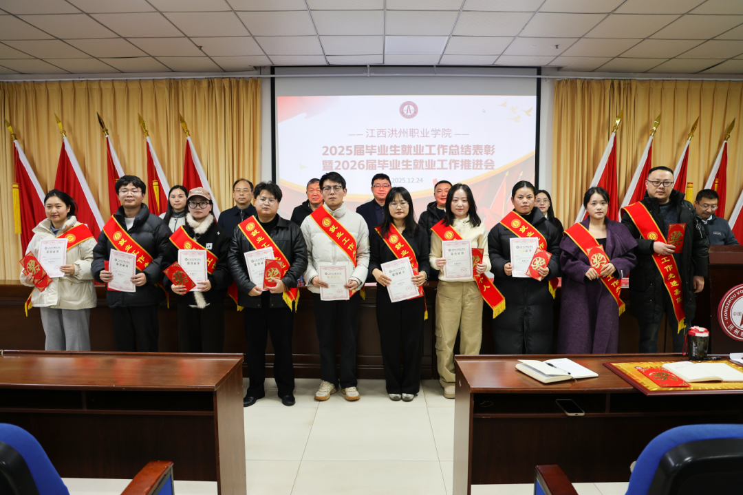 12月24日,学校在图书馆一楼学术报告厅隆重召开2025届毕业生就业工作总结表彰暨2026届毕业生就业工作推进会,新能源产业学院凭借扎实的就业工作成效,荣获2025届毕业生就业工作先进集体;学院毕业班辅导员周乐平在就业工作中履职尽责、成绩突出,荣获2025届毕业生就业工作先进个人。