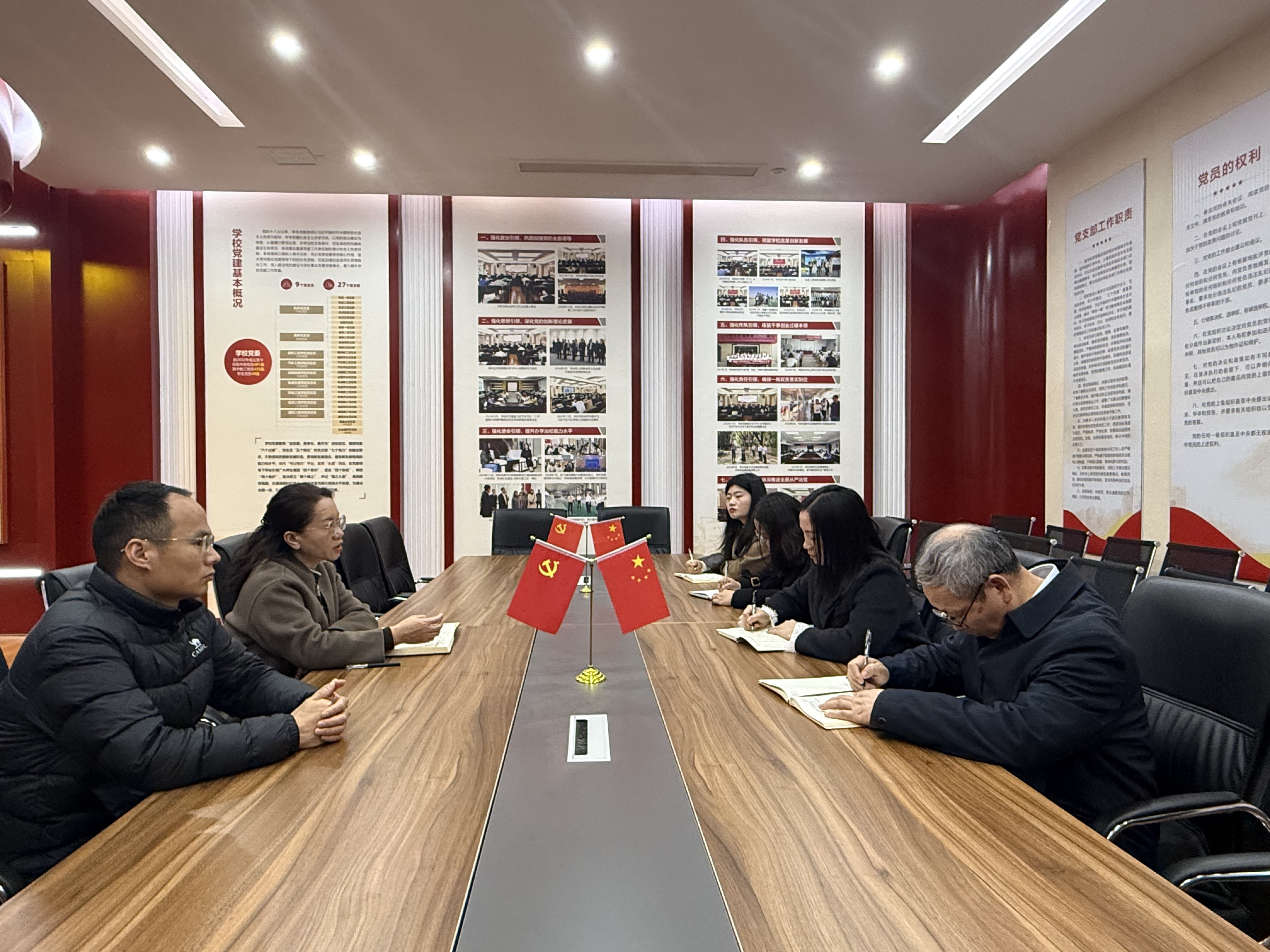 随后,双方开展座谈交流。李娟燕书记详细介绍了学院省级样板支部的创建历程、特色做法、品牌培育及验收工作经验。双方围绕创建流程、材料准备、亮点凝练、党建与业务深度融合等关键问题深入沟通、坦诚交流,互学互鉴、共同提升。