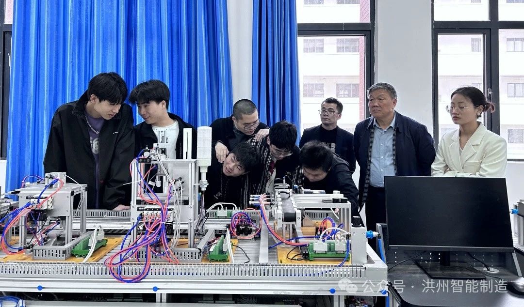 本堂课由机电一体化教研室主任刘莹彪主讲《机电一体化》科目中的“分拣单元编程与调试”内容。副校长刘权辉、学院领导、全体专兼职教师及教务处工作人员旁听,20五年机电1班学生听课。