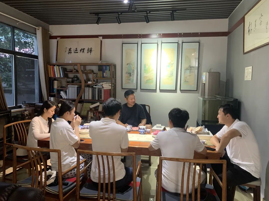 走进陈栋老师的朴真堂,各式精美瓷器尽显传统陶瓷艺术的独特韵味。现场,陈栋老师向探访团队详细介绍了瓷器的完整制作工艺。当拿起一件青花瓷瓶时,陈栋老师更是兴致盎然地解读起瓶身图案的文化寓意,从传统纹样的象征意义到背后的历史故事,他娓娓道来,让团队成员在欣赏瓷器之美的同时,更感受到其中蕴含的深厚文化内涵。