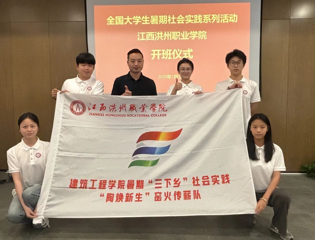为深度探寻地方历史文化的深厚脉络,真切触摸古代文明的璀璨智慧,积极投身于非遗文化的传承与发展大业,同时响应国家鼓励大学生深入基层、服务社会的号召,江西洪州职业学院“陶焕新生”窑火传薪队以“三下乡”暑期社会实践为契机,期望通过实际行动助力乡村文化振兴,提升自身社会责任感与实践能力。2025年7月1日,在这个承载着特殊意义、党的光辉熠熠生辉的日子里,团队怀揣着对传统文化的炽热敬意,奔赴江西省景德镇市湖田瓷社,正式拉开了一场独具匠心、别开生面的实践活动的帷幕。
