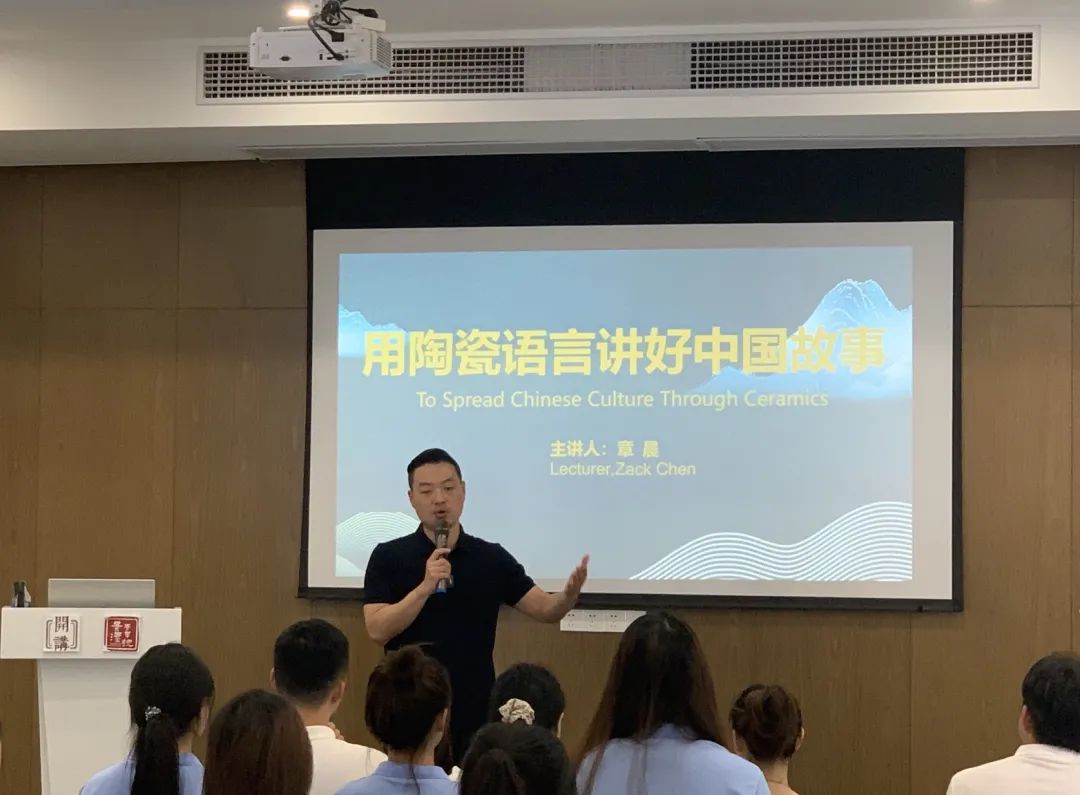 景德镇市文联副主席、市新青年湖田瓷社社长章晨老师带来了一场精彩纷呈、发人深省的讲座。他以《用陶瓷语言讲好中国故事》为题,毫无保留地分享了自己十多年来在陶瓷行业摸爬滚打的心路历程与宝贵经验。