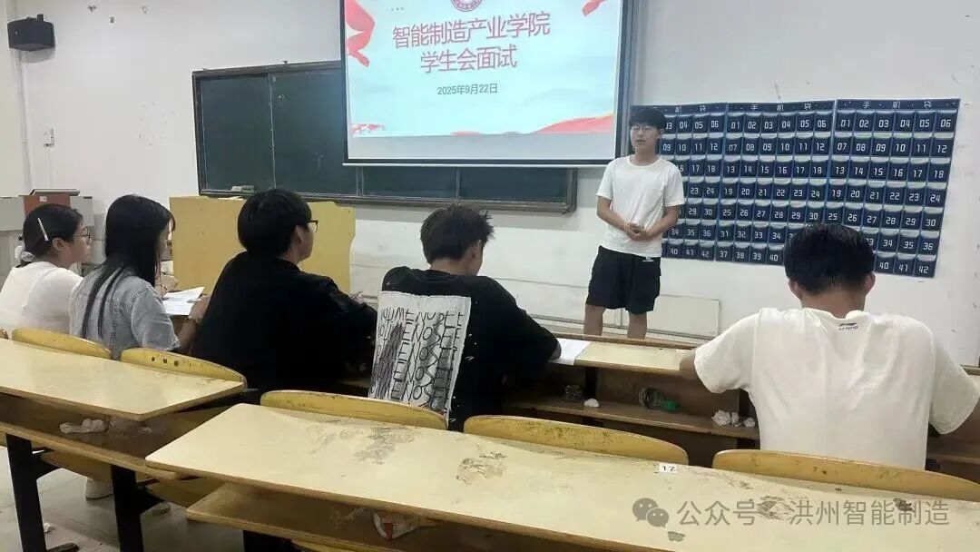在组织部和办公室的协同配合下,招新面试环节井然有序。,智能制造产业学院学生会 2025 年秋季招新面试于2025年9月22日在教学楼1-304顺利开展。本次面试由学生会主席团成员、各部门负责人担任面试官,围绕 “匹配度、热情度、潜力值” 三个核心维度,寻找与学生会理念同频、愿意为同学服务、渴望在智能制造领域探索成长的新成员。