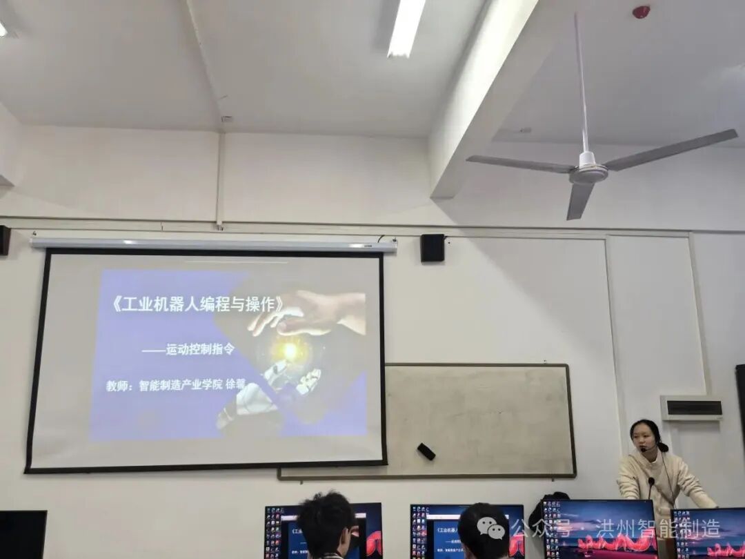 主讲老师徐馨以“工业机器人运动控制指令(MoveL、MoveC)”为核心内容,打造“理论+仿真+思政”三维教学模式,让课堂兼具“技术深度”与“思想温度”。
