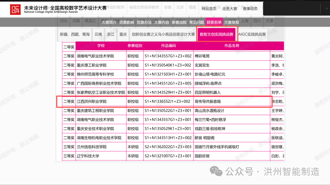 近日,2025年“未来设计师・全国高校数字艺术设计大赛(NCDA)”江西省赛落下帷幕,智能制造产业学院涂志乾、黎佳奇、王子豪三位同学凭借作品“骨传导共振音箱”在全省职业组学生赛中荣获二等奖,并成功晋级全国总决赛。