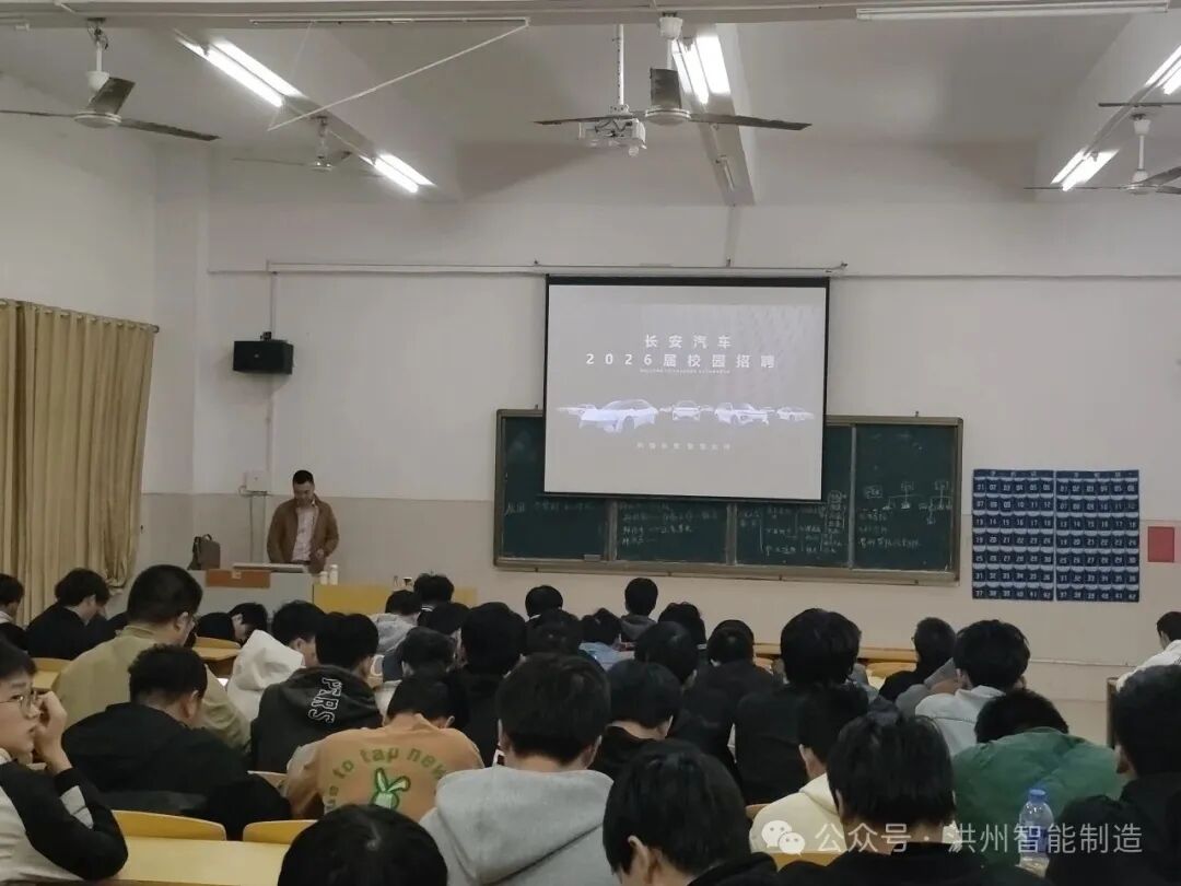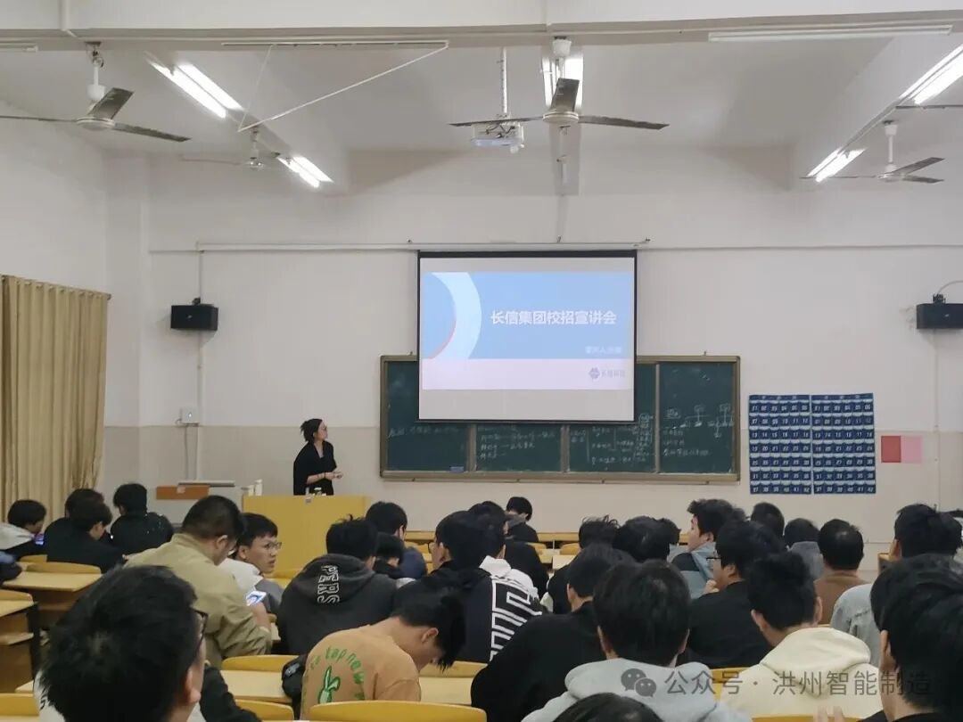 为搭建校企人才对接桥梁,助力毕业生精准就业,10月26日晚19点,智能制造产业学院精心策划的 “‘企’进校园,‘职’引未来”专场企业招聘宣讲会在4教501举行。本次宣讲会特邀芜湖长信新型显示器件有限公司、长安汽车、芜湖东信光电科技有限公司三家行业龙头企业组团参会,为学院2026届相关专业毕业生带来了涵盖技术研发、生产管理、品质管控等多个领域的优质就业岗位,吸引了近 130名学生到场咨询求职。
