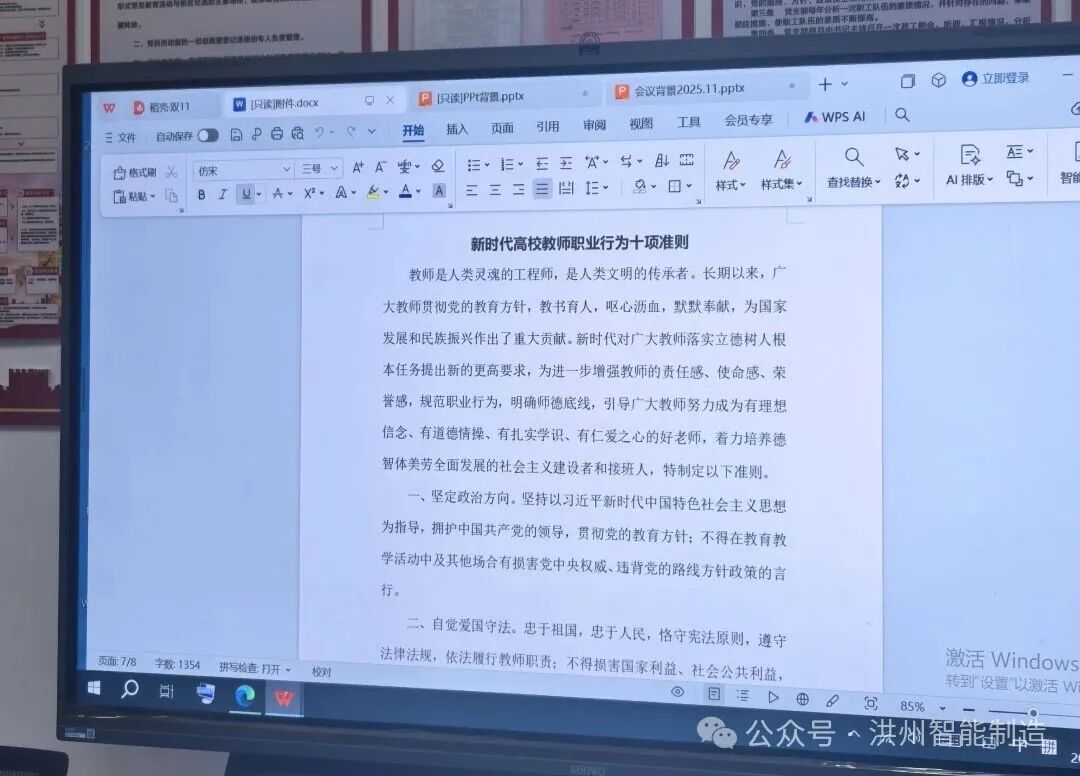 深耕先进典型事迹,通过观看“人民教育家”等优秀教师的专题视频,汲取榜样力量,激发职业荣誉感与敬业精神;细学《新时代高校教师职业行为十项准则》,明确师德底线与职业规范,强化依法执教、廉洁从教的意识。