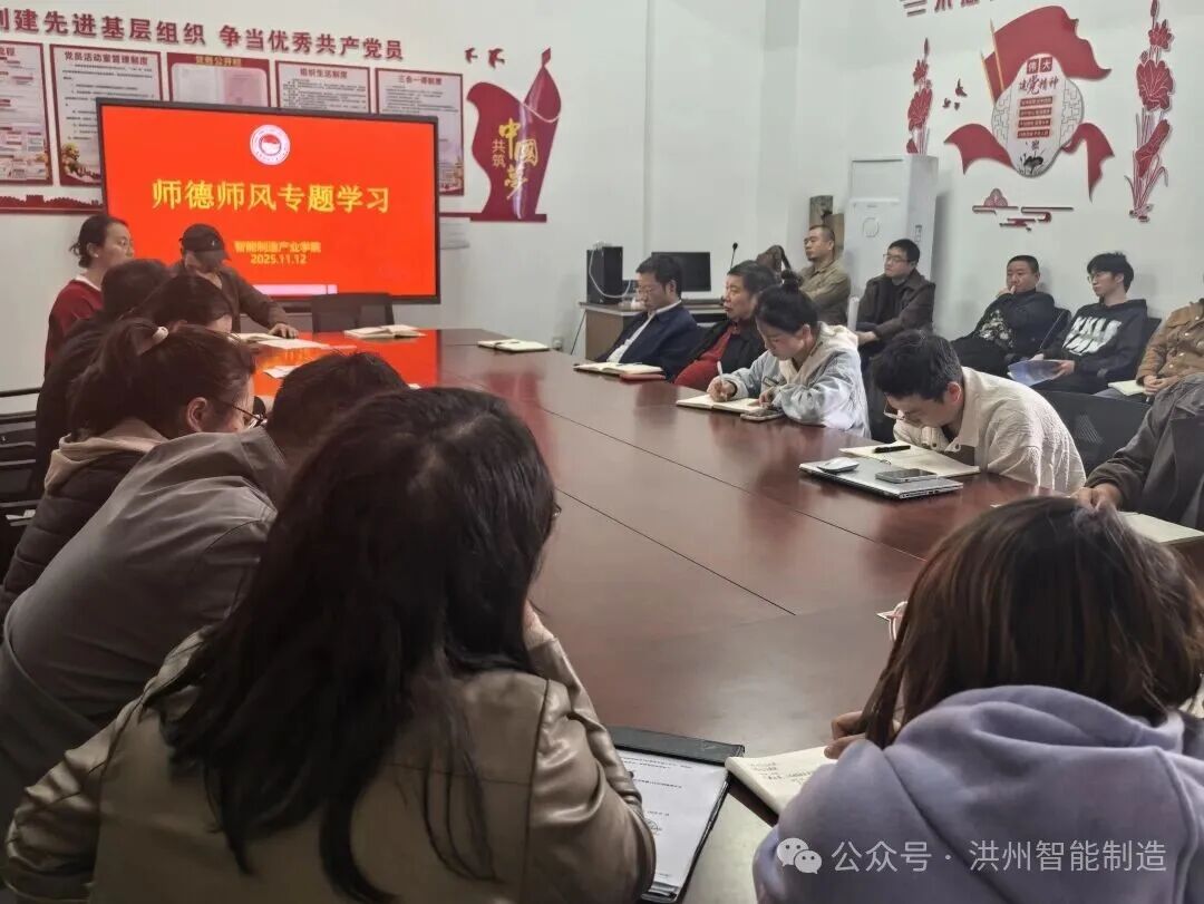 为加强教师队伍建设,提升教职工思想政治素质与职业道德水平,营造风清气正的育人环境,11月12日智能制造产业学院组织全体教职工开展师德师风专题学习活动。