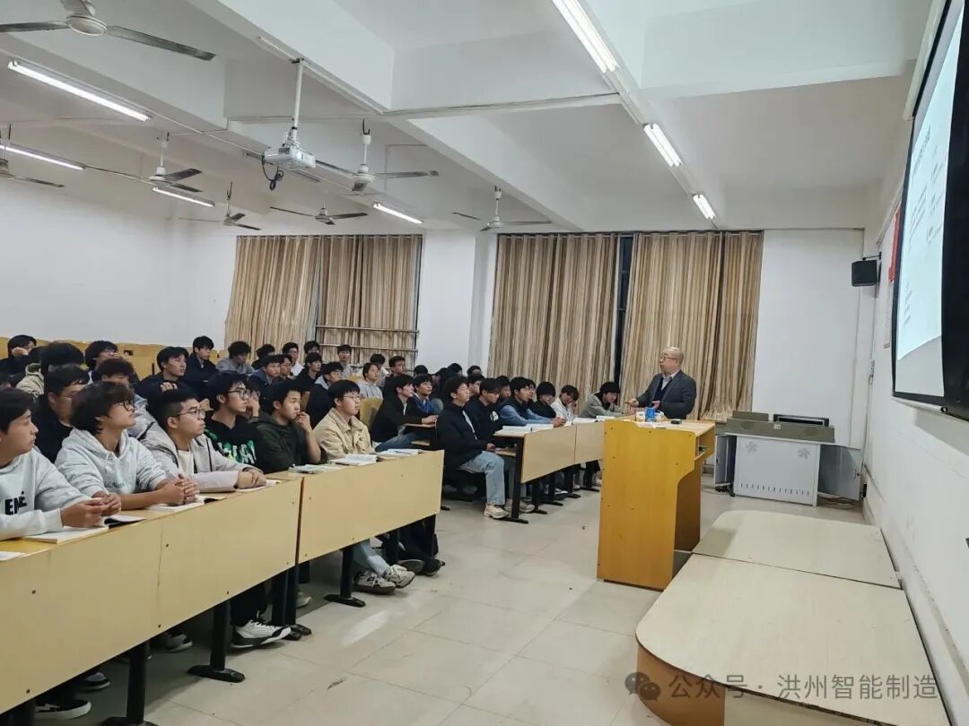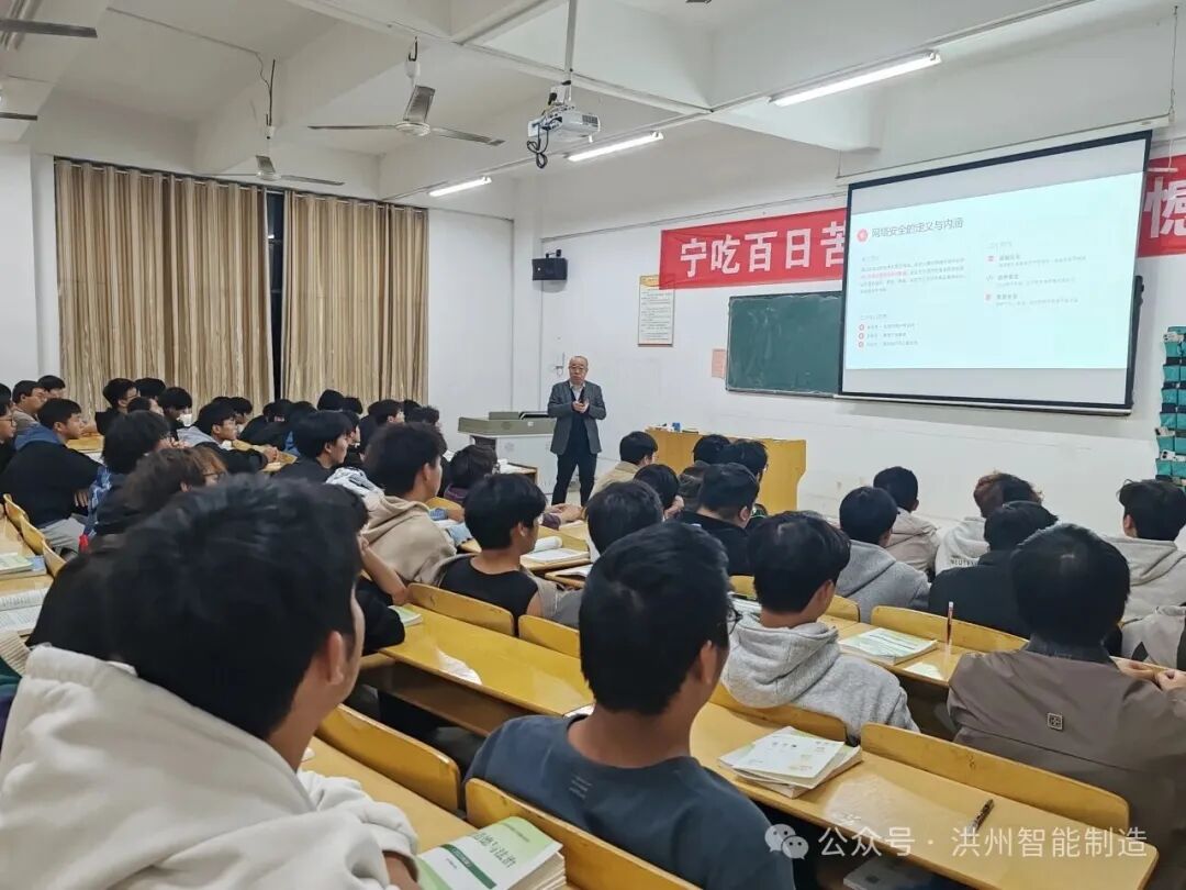 为深入学习贯彻党的二十届四中全会精神,落实江西省“大思政课”教学改革要求,推动校领导讲思政课制度化、常态化,2025年12月1日晚,校长助理黎洵走进智能制造产业学院,以“没有网络安全,就没有国家安全”为主题,为2025级电气自动化专业1班、2班学生带来一堂生动而深刻的专题思政课。