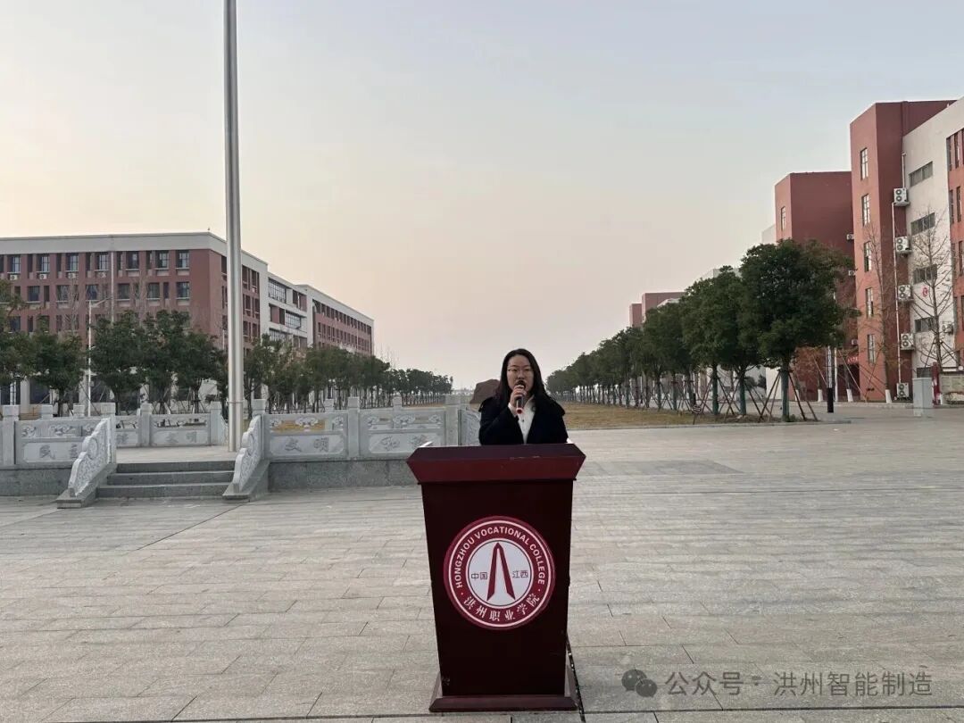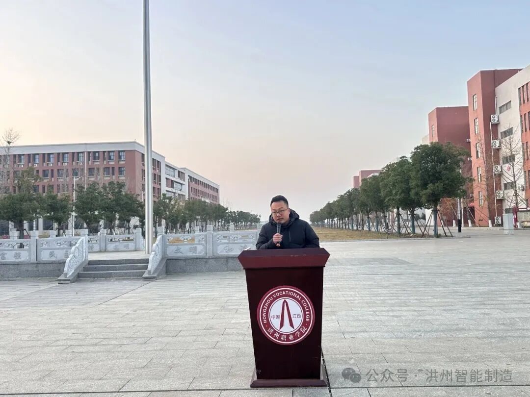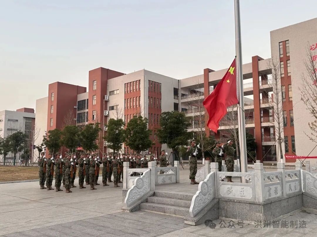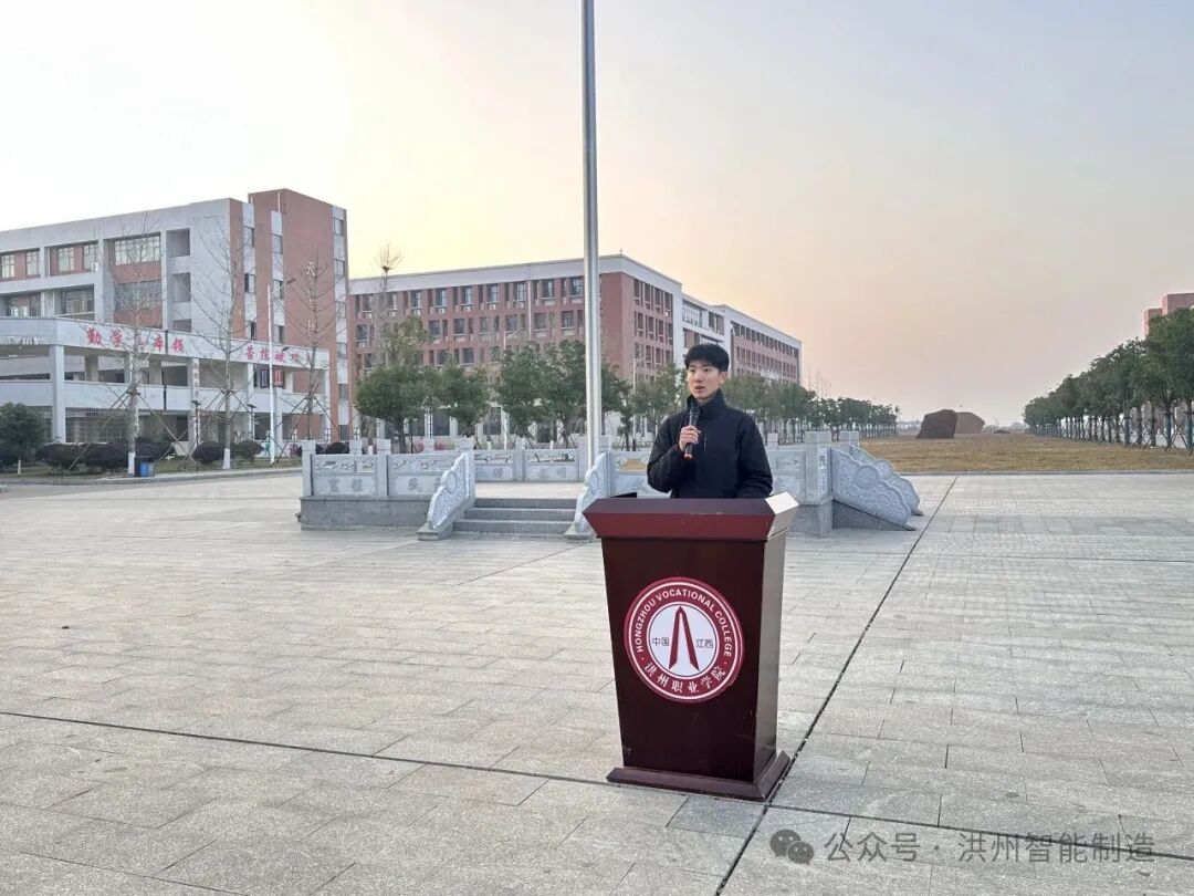 为进一步厚植大学生家国情怀,激发使命担当,强化拼搏奋进精神,激发广大师生的爱国热情与时代使命感,智能制造产业学院于2025年12月8日早晨,举行了以“铭记历史,珍爱和平,砥砺前行,振兴中华”为主题的国旗下思政课暨升旗仪式,智能制造产业学院全体辅导员、2025级全体新生参与。