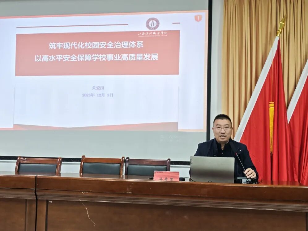 为深入学习贯彻党的二十届四中全会精神,落实江西省“大思政课”改革要求,12月3日,江西洪州职业学院副校长关爱国走进智能制造产业学院,以“筑牢现代化校园安全治理体系,以高水平安全保障学校事业高质量发展”为主题,讲授了一堂主题鲜明、内容扎实的思政公开课。
